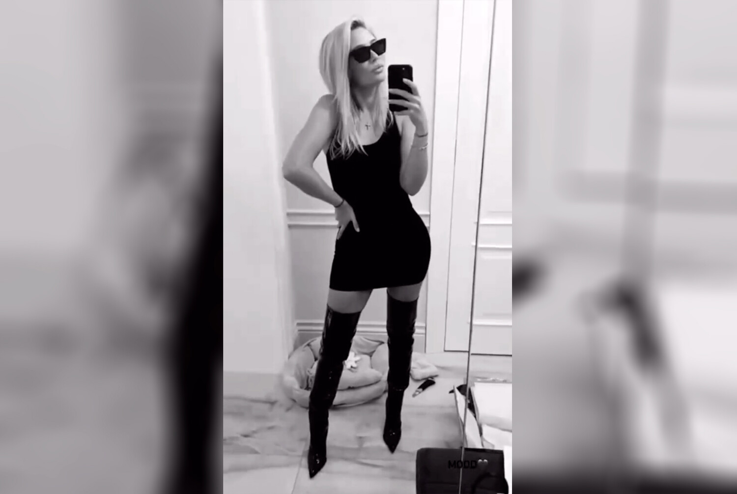 42-летняя Наталья Рудова позировала в черном мини-платье и лаковых ботфортах с узким мысом и на шпильке. Образ дополнили солнцезащитные очки. Волосы актриса выпрямила и сделала легкий вечерний макияж.