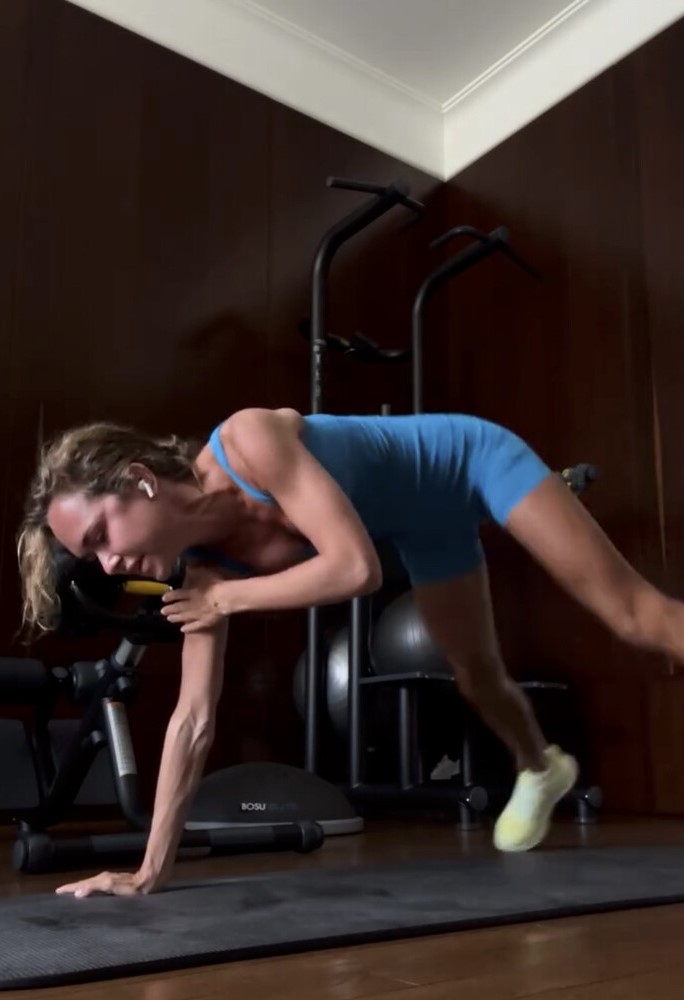 Стефания Маликова позировала в голубом топе и велосипедках. Бизнесвумен выполняла упражнения на все группы мышц в спортзале загородного дома. Волосы при этом она собрала в хвост и отказалась от макияжа.
