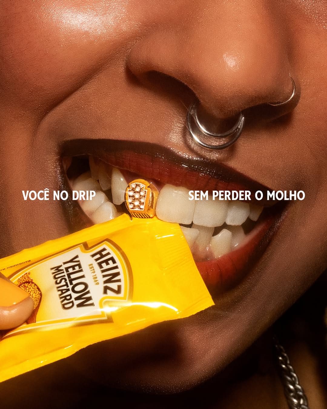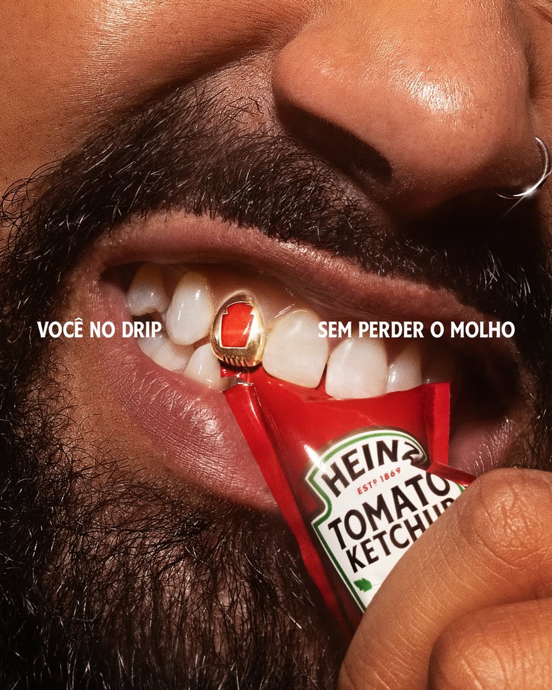 Heinz снова доказывает, что даже в таких простых вещах, как кетчуп, можно быть креативным. На этот раз бразильское подразделение бренда выпустило неожиданный аксессуар — грилзы для зубов, с помощью которых легко открываются фирменные пакетики с соусом.
