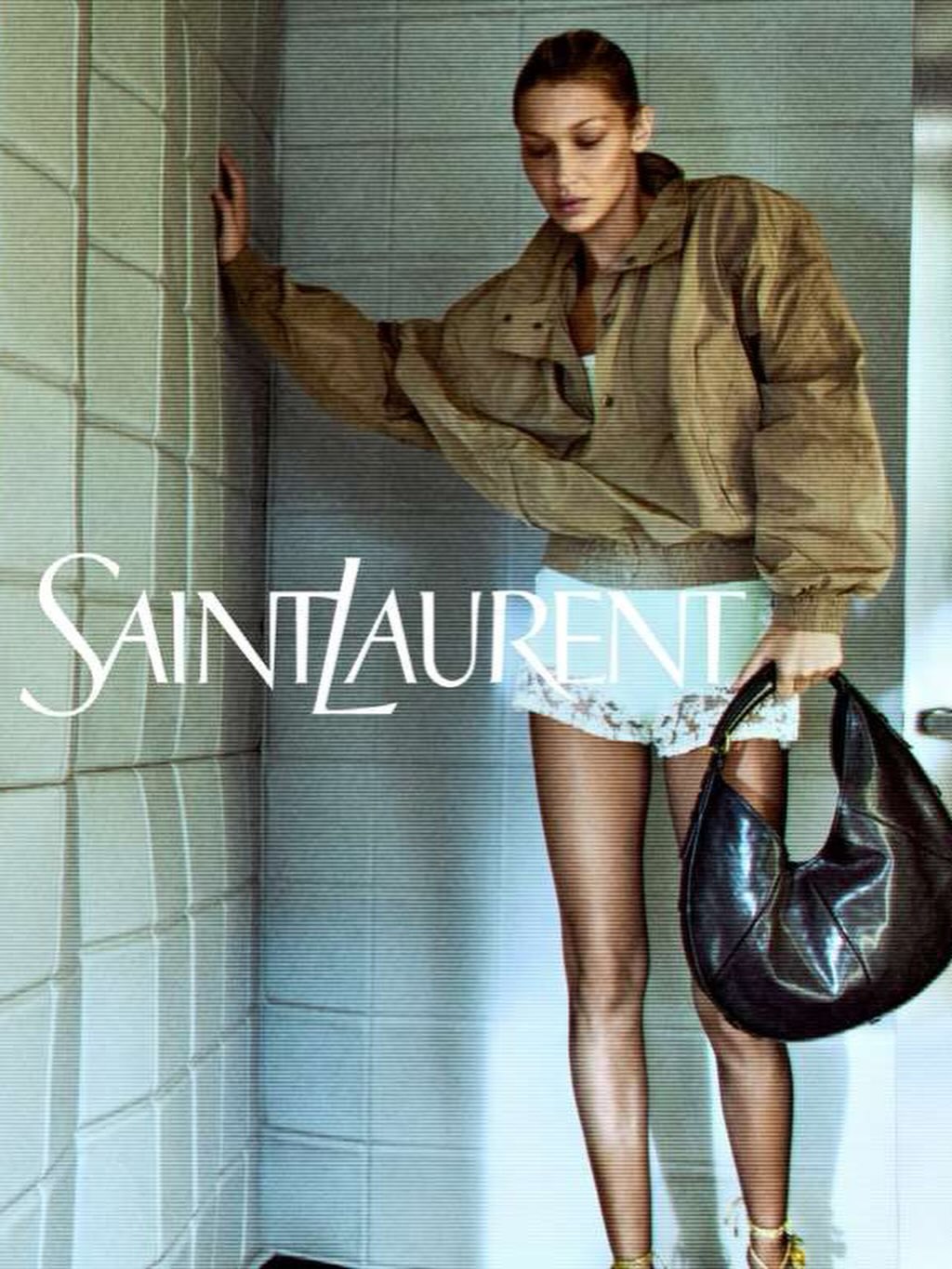 29-летняя Белла Хадид снялась в новой рекламной кампании бренда Saint Laurent. Супермодель примерила комбинезон с короткими шортами, который был украшен кружевом. Манекенщица также надела коричневую замшевую куртку, черные колготки и золотые босоножки на каблуках. Образ звезды подиумов завершила кожаная сумка. Бизнесвумен собрали волосы в пучок и сделали макияж в естественном стиле.