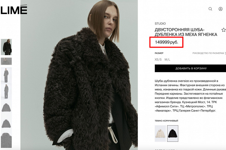 Российский бренд Lime раскритиковали за шубу стоимостью 150 тысяч рублей. Комментарии появились на странице блогерши Ирины Халкус в Instagram (владелец компания Meta признана в России экстремистской и запрещена).