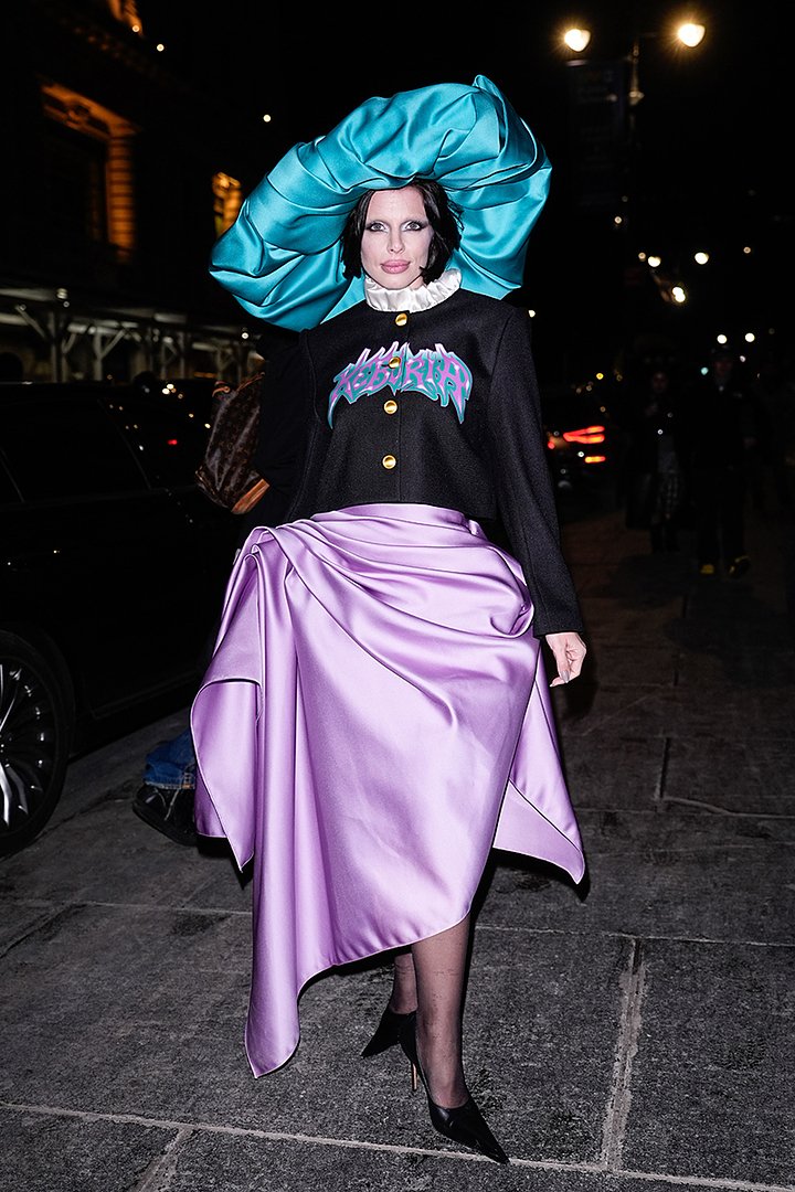 Любительница эпатажа Джулия Фокс сделала ставку на яркость, отказавшись от привычных откровенных образов. В таком наряде актриса пришла поддержать рэпера A$ AP Rocky, создавшего линейку одежды для показа креативного агентства AWGE.