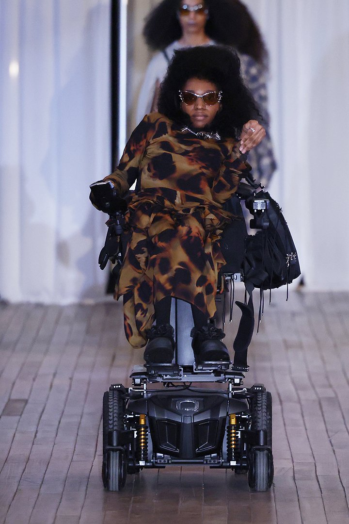 На показе основанного ею бренда Collina Strada вышли на подиум не только модели различного типажа и комплекции, но и американка Аариана Роуз Филип, которая стала первой темнокожей манекенщицей с церебральным параличом, подписавшей контракт с крупным агентством.