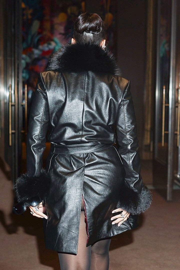 Рианна попала на первые полосы СМИ, даже не дойдя до показа AWGE, которое представляло коллекцию одежды ее возлюбленного, рэпера A$ AP Rocky. На подходе к месту кожаный плащ неожиданно оголил ягодицы исполнительницы, что тут же запечатлели уличные фотографы. Несмотря на конфуз певица заняла место в первом ряду на показе осенне-зимней коллекции 2026 года.